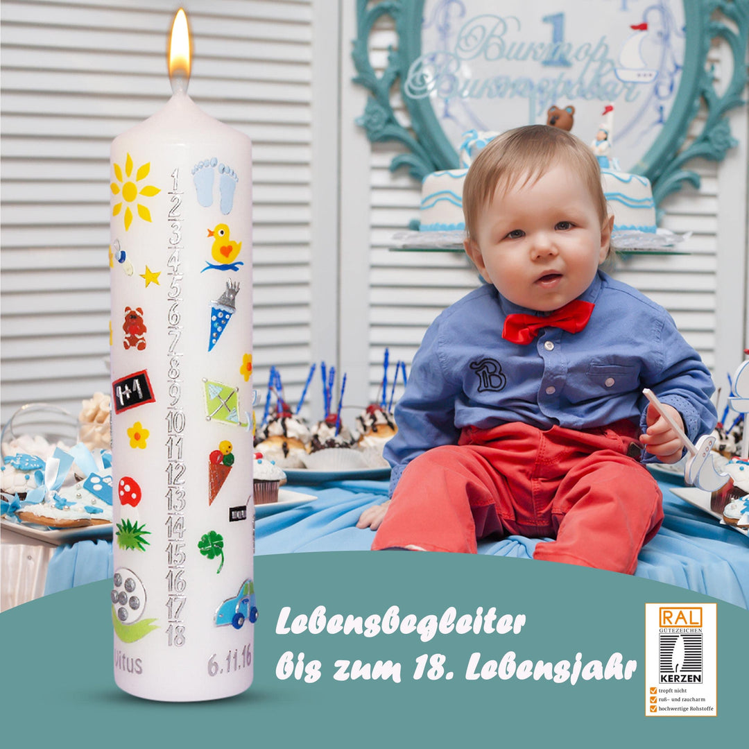 Individuell verziert mit Name und Datum: unsere Lebenskerzen, Geburtstagskerzen & Geburtskerzen aus Premium-Wachs sind einzigartige Geschenkideen.